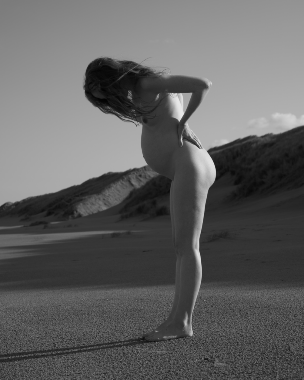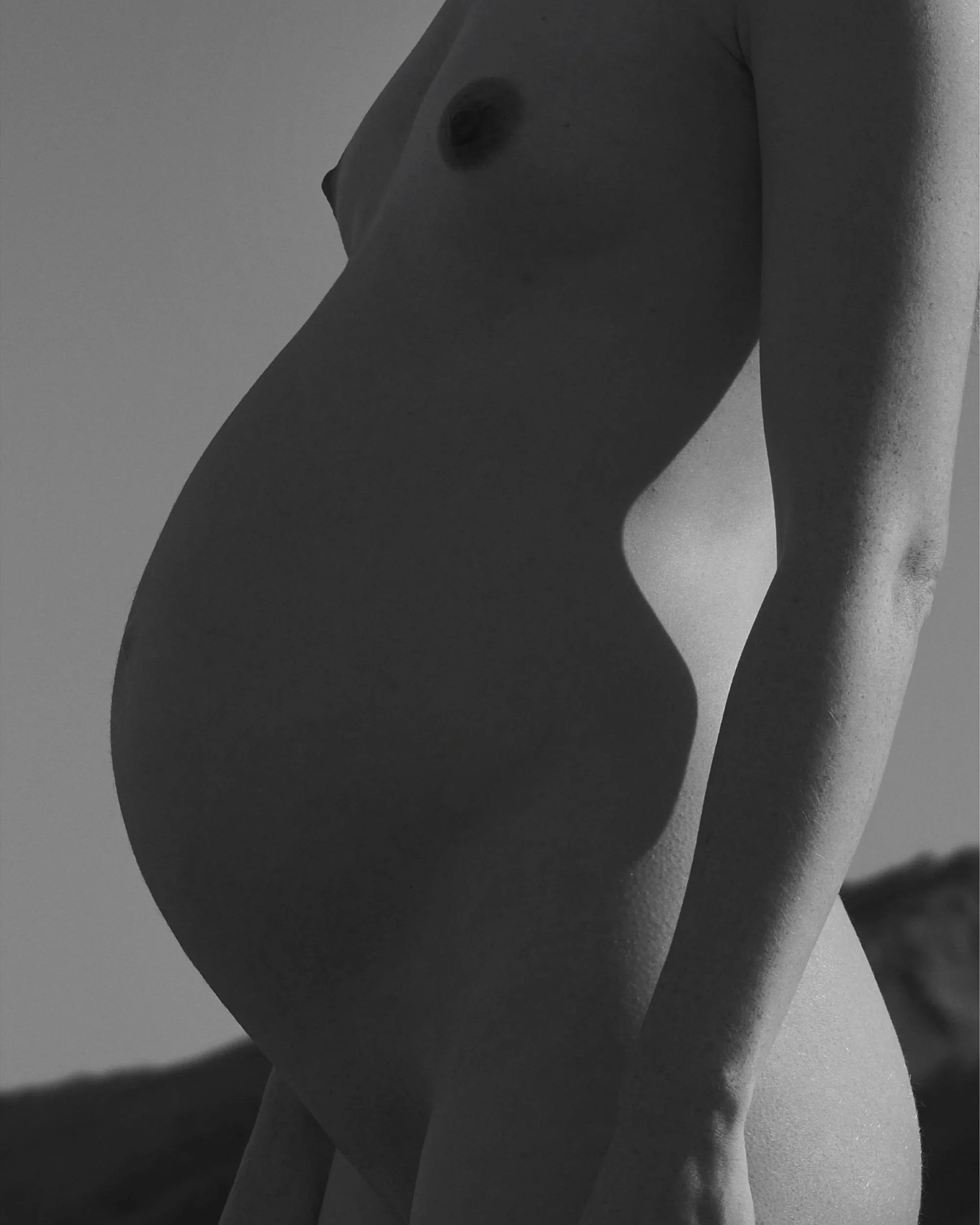 The images become a small series of intimate black and white portraits. Capturing a body in transition, carrying the beauty of what is, the quiet farewell to what once was and welcoming the new. A true rite of passage.